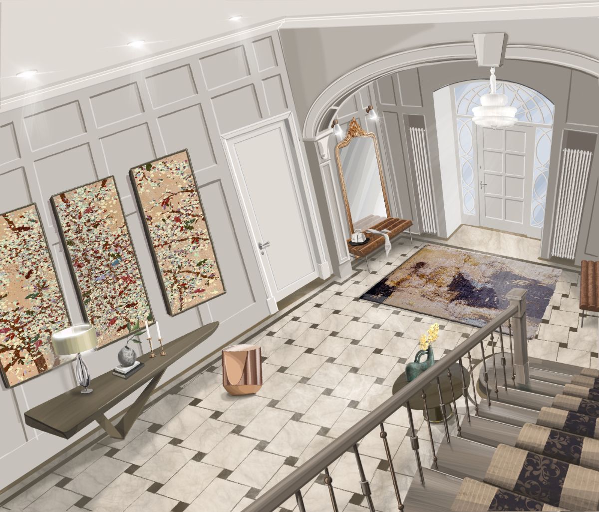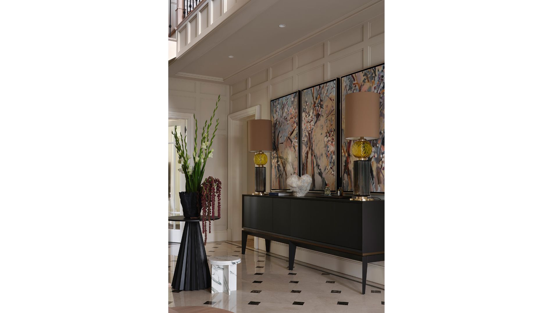 Входная зона: первое впечатление! Мы создали триптих на заказ у художницы Аси Феоктистовой, который стал центром внимания. Высокие лампы (1.10 м) и массивный комод задают тон всему дому, создавая атмосферу торжественности прямо с порога. (при этом мы не забыли о функциональности — пространство под лестницей было закрыто для хозяйственных нужд. Это решение позволяет сохранить порядок в доме и эффективно использовать каждый квадратный метр. Особенно когда у вас много чемоданов 😂)