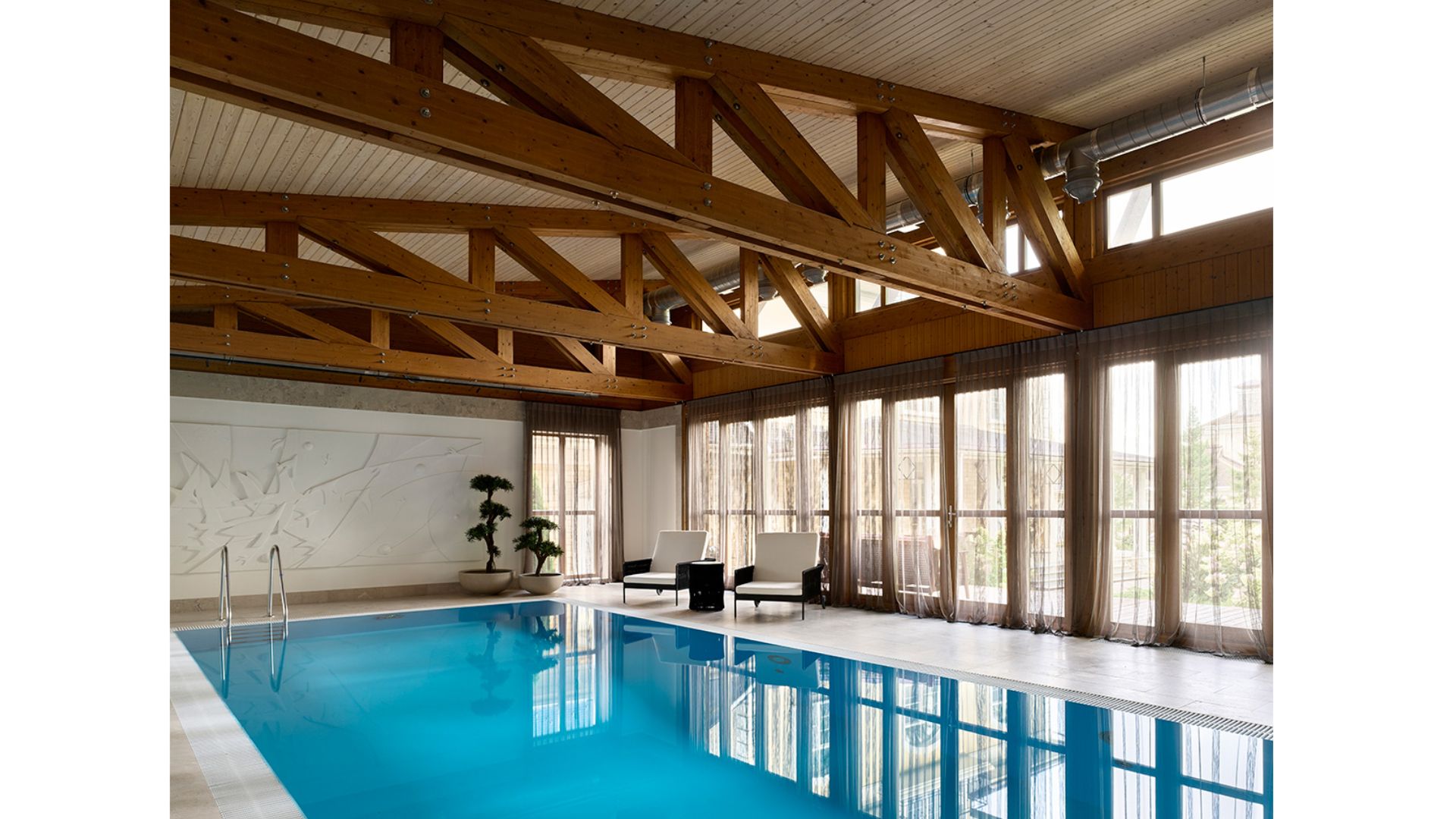 СПА зона. бассейн-место для утренних зарядок и спа процедур (мы перестроили помещение так, чтобы появилось место для сауны, зоны отдыха и су) Конечно, основное внимание на барельеф-стилизованные птицы от скульптора Лолы Метелкиной парят вдаль, обнажая перспективу за панорамными окнами ……