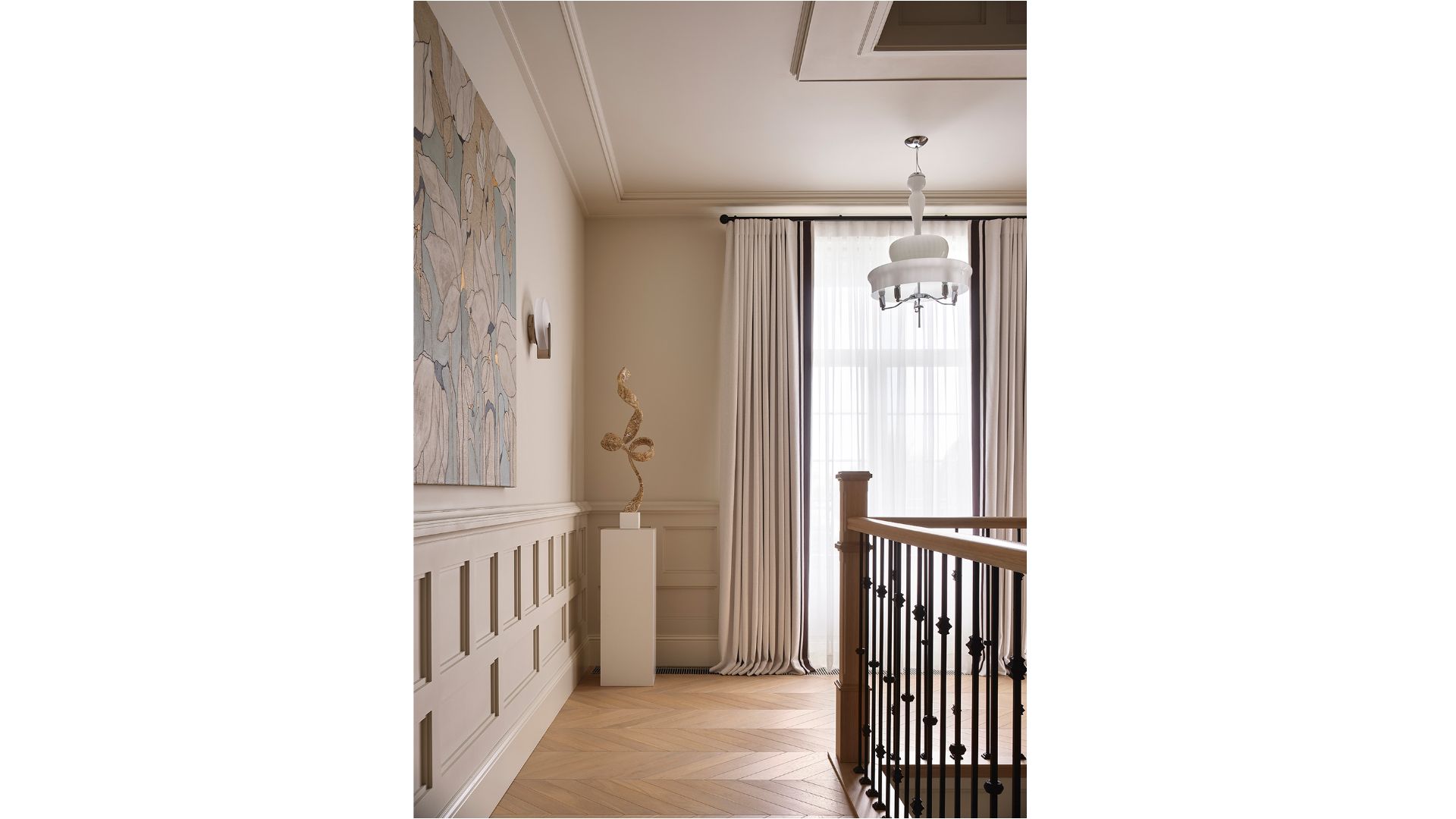 Вдохновляясь американской классикой, созданной архитекторами этого дома 10 лет назад, и доставшейся мне в работу, мы с коллегами создали современное пространство для семьи из трех человек, где европейские традиции вплетаются в американскую актуальность. Наша задача заключалась в том, чтобы скрыть недостатки строительства и моды того времени, подчеркнув достоинства. Мы доработали столярные изделия, соорудили лестницу, проверили и провели, где необходимо новую электрику и запустили систему вентиляции и «умный дом». Каждая деталь была тщательно продумана для создания комфортной и функциональной среды.